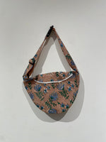 Meet the Dune Blossom Fanny Pack, your go-to accessory for effortless style and practicality. Crafted from soft, handcrafted cotton, this bag features a warm brown-beige base adorned with delicate blue and green floral patterns, evoking a natural, earthy elegance.