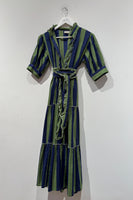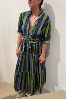 Crafted in soft, breathable cotton, this striking dress blends comfort with effortless elegance. Featuring bold red and pink stripes, delicate ruffle detailing along the neckline, and a flattering belted waist, it’s designed to move with you from day to night. The flowing tiered skirt adds a touch of playful femininity, while the half-sleeves give it a timeless silhouette.