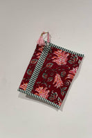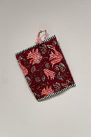 Block-Printed Cotton Zip Pouch - Burgundy love