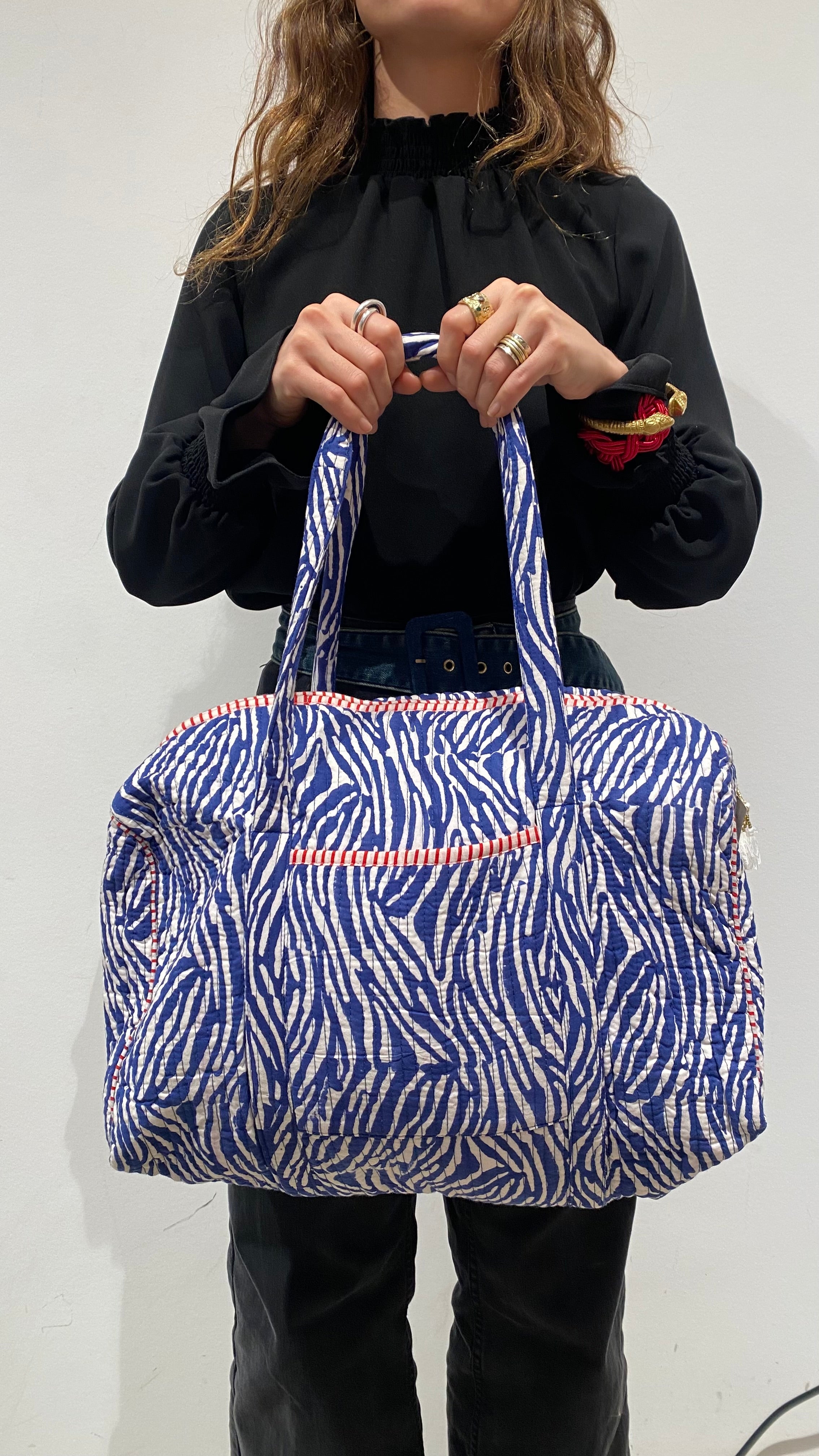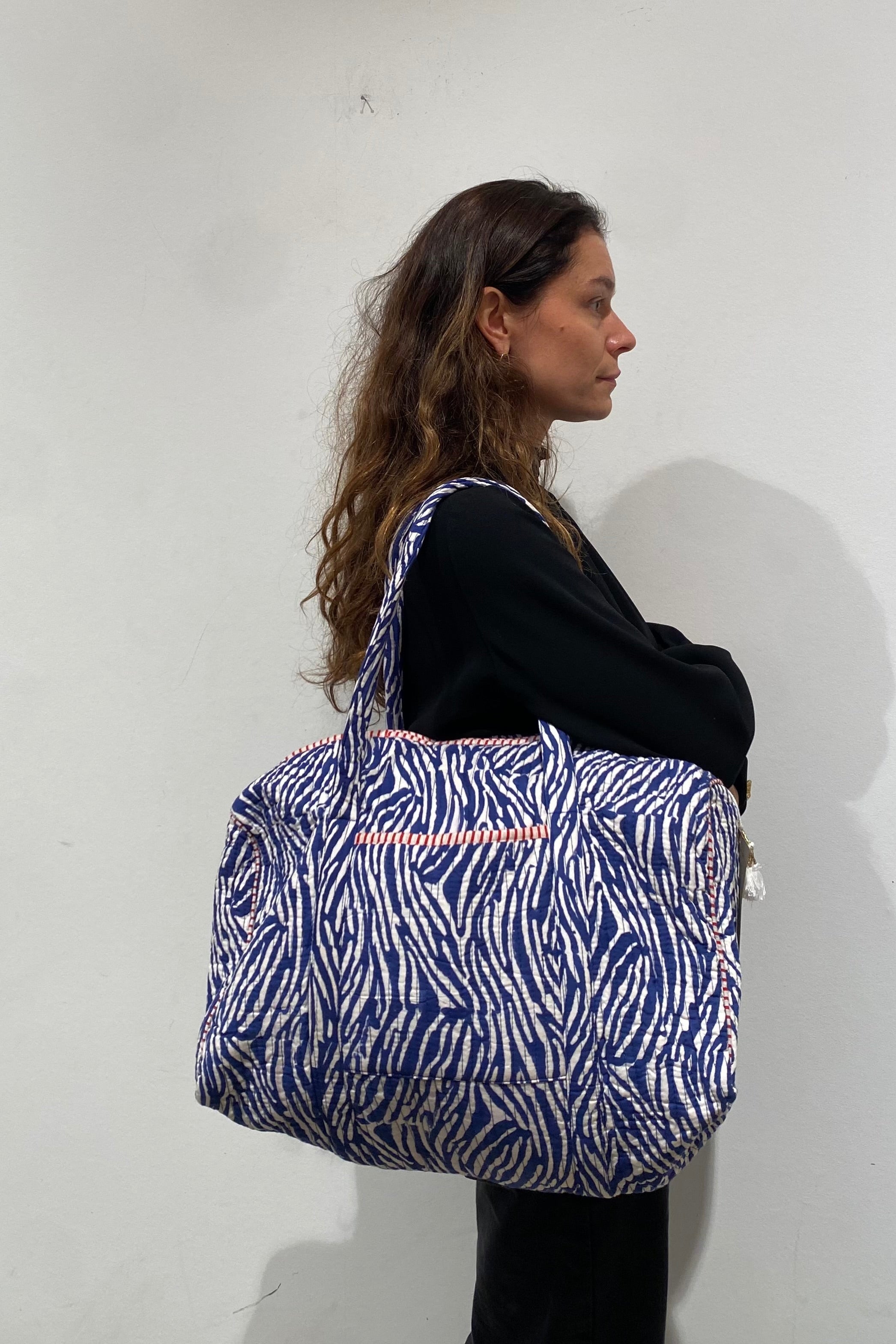 Olivia Cotton Sport/Travel Bag- Zebra Blue