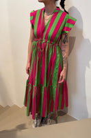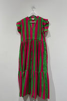 Palma Cotton Dress - Pink/Green Stripes - S/M