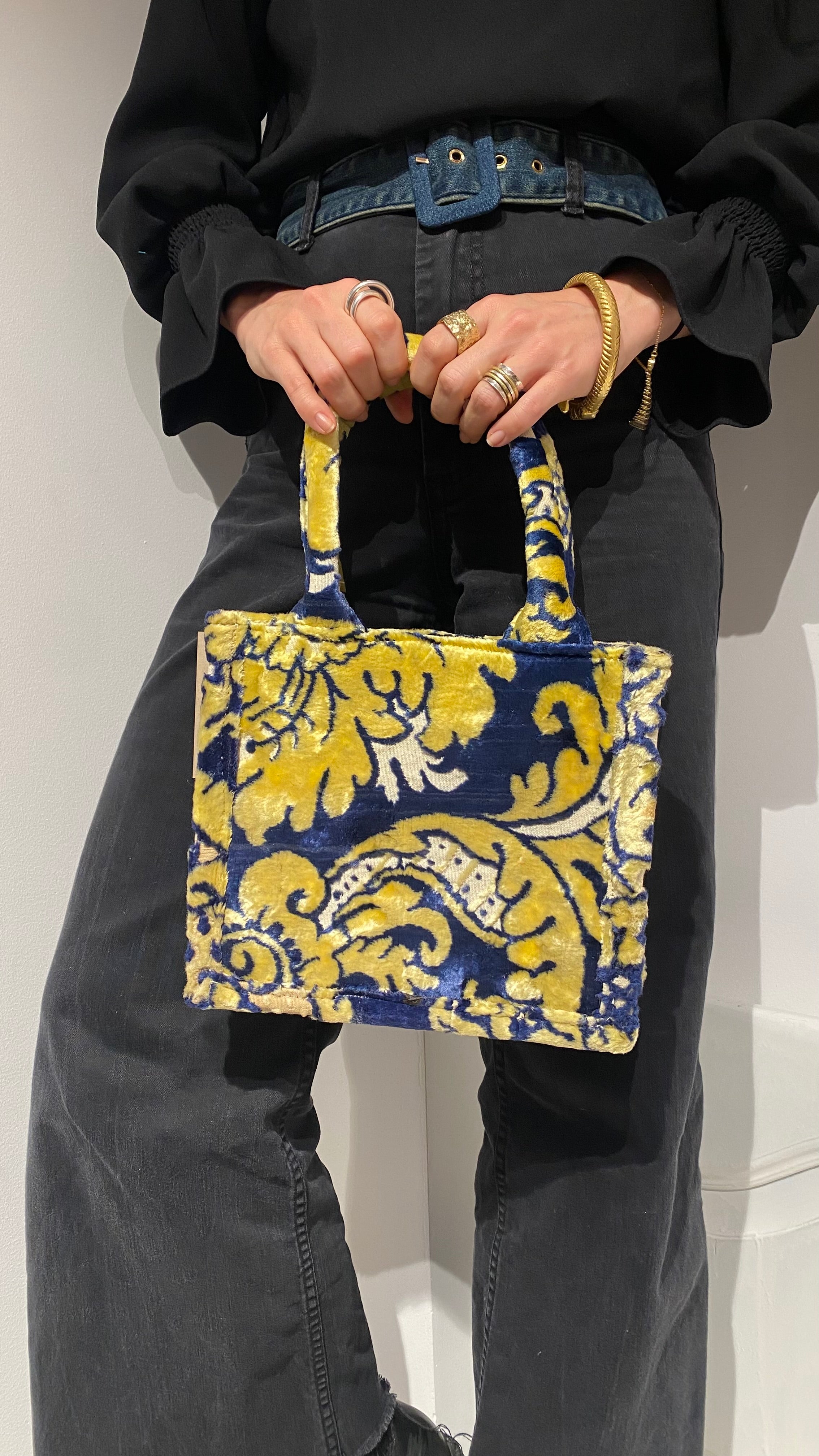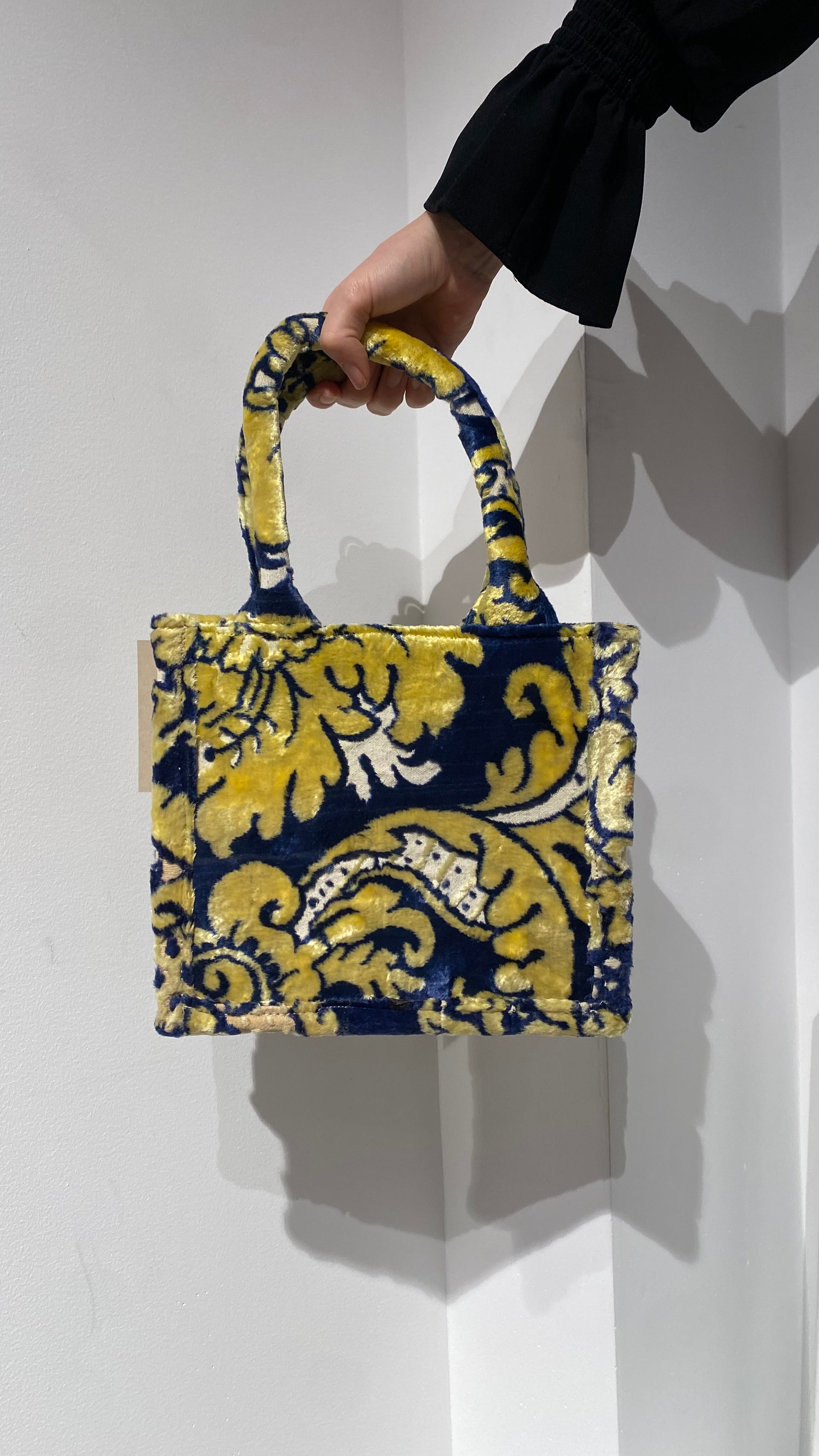 Small Upcycled Velvet Bag : Yellow/Blue