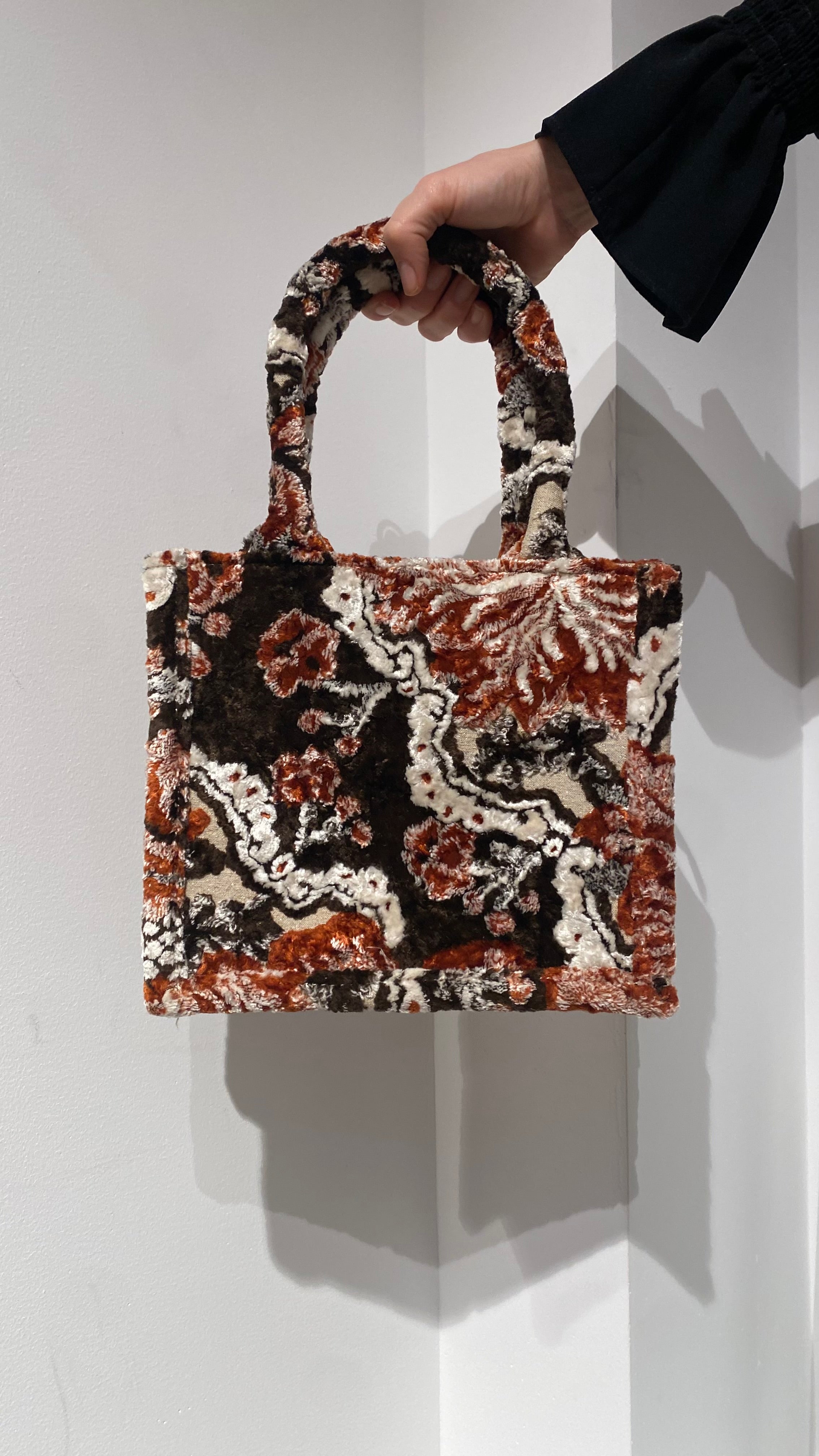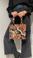 Discover the charm of sustainable craftsmanship with our upcycled velvet bag, lovingly handmade in Morocco. Each piece is created from reclaimed velvet couches, giving new life to luxurious materials while ensuring every bag is truly one of a kind.