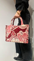 Elevate your everyday style with our medium upcycled velvet bag, handcrafted in Morocco from repurposed velvet couches. Each bag is thoughtfully created by local artisans, transforming previously loved materials into a unique accessory — no two pieces are ever the same.