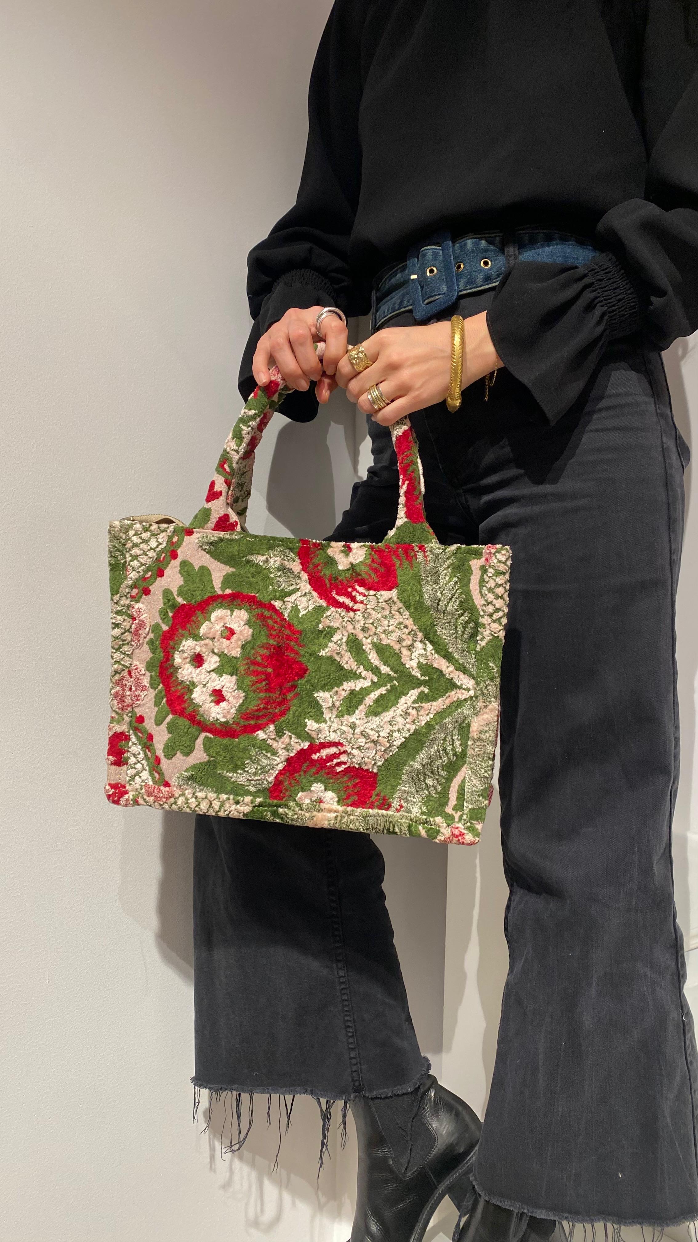 Elevate your everyday style with our medium upcycled velvet bag, handcrafted in Morocco from repurposed velvet couches. Each bag is thoughtfully created by local artisans, transforming previously loved materials into a unique accessory — no two pieces are ever the same.