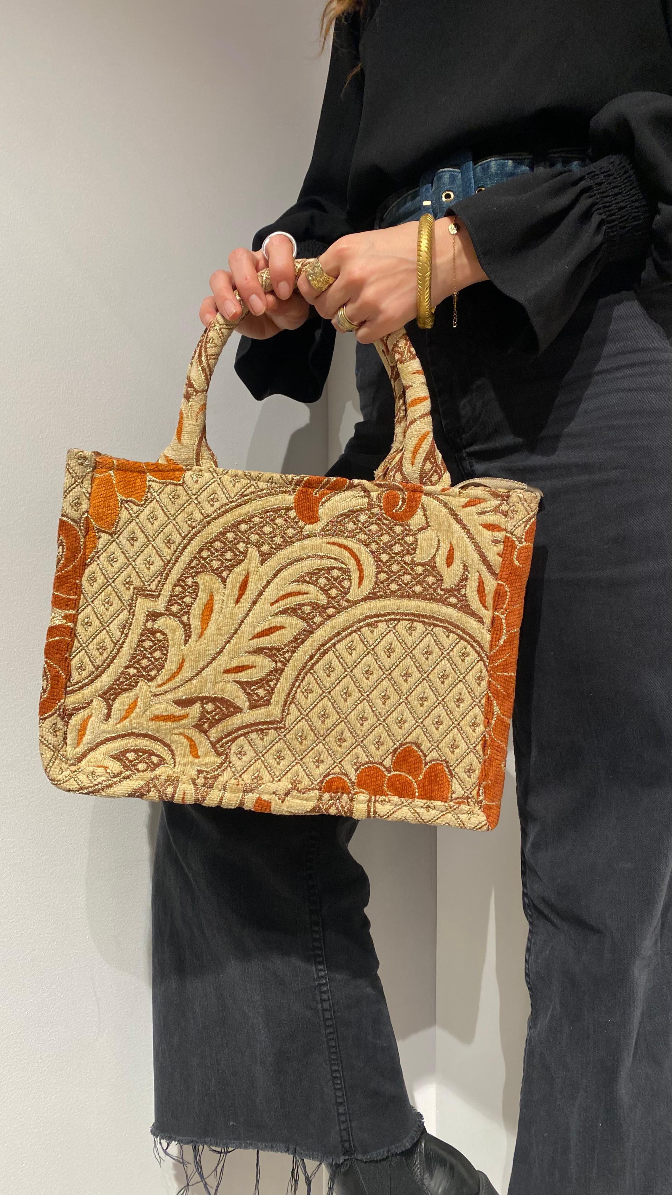 Elevate your everyday style with our medium upcycled velvet bag, handcrafted in Morocco from repurposed velvet couches. Each bag is thoughtfully created by local artisans, transforming previously loved materials into a unique accessory — no two pieces are ever the same.