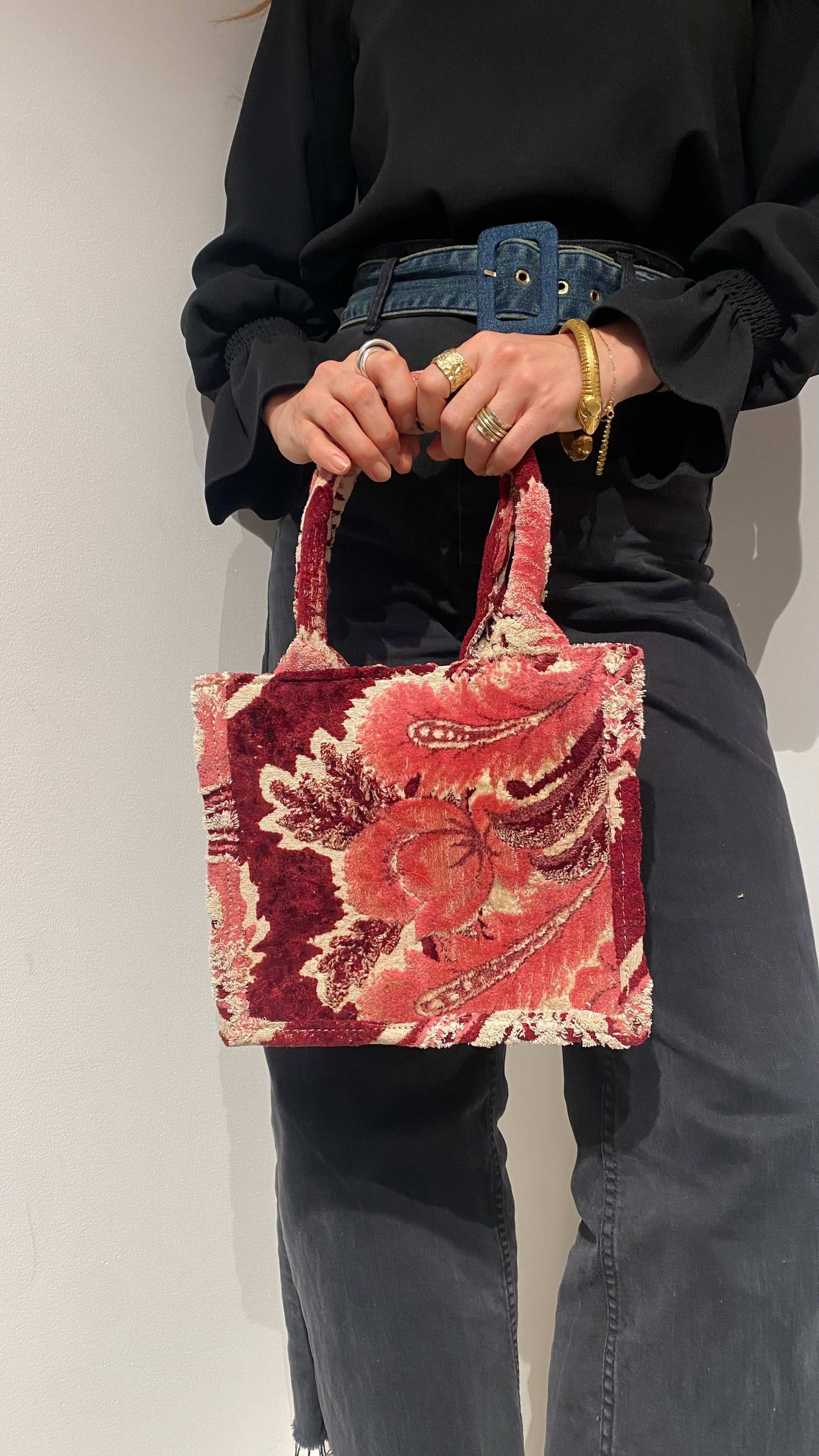 Discover the charm of sustainable craftsmanship with our upcycled velvet bag, lovingly handmade in Morocco. Each piece is created from reclaimed velvet couches, giving new life to luxurious materials while ensuring every bag is truly one of a kind.