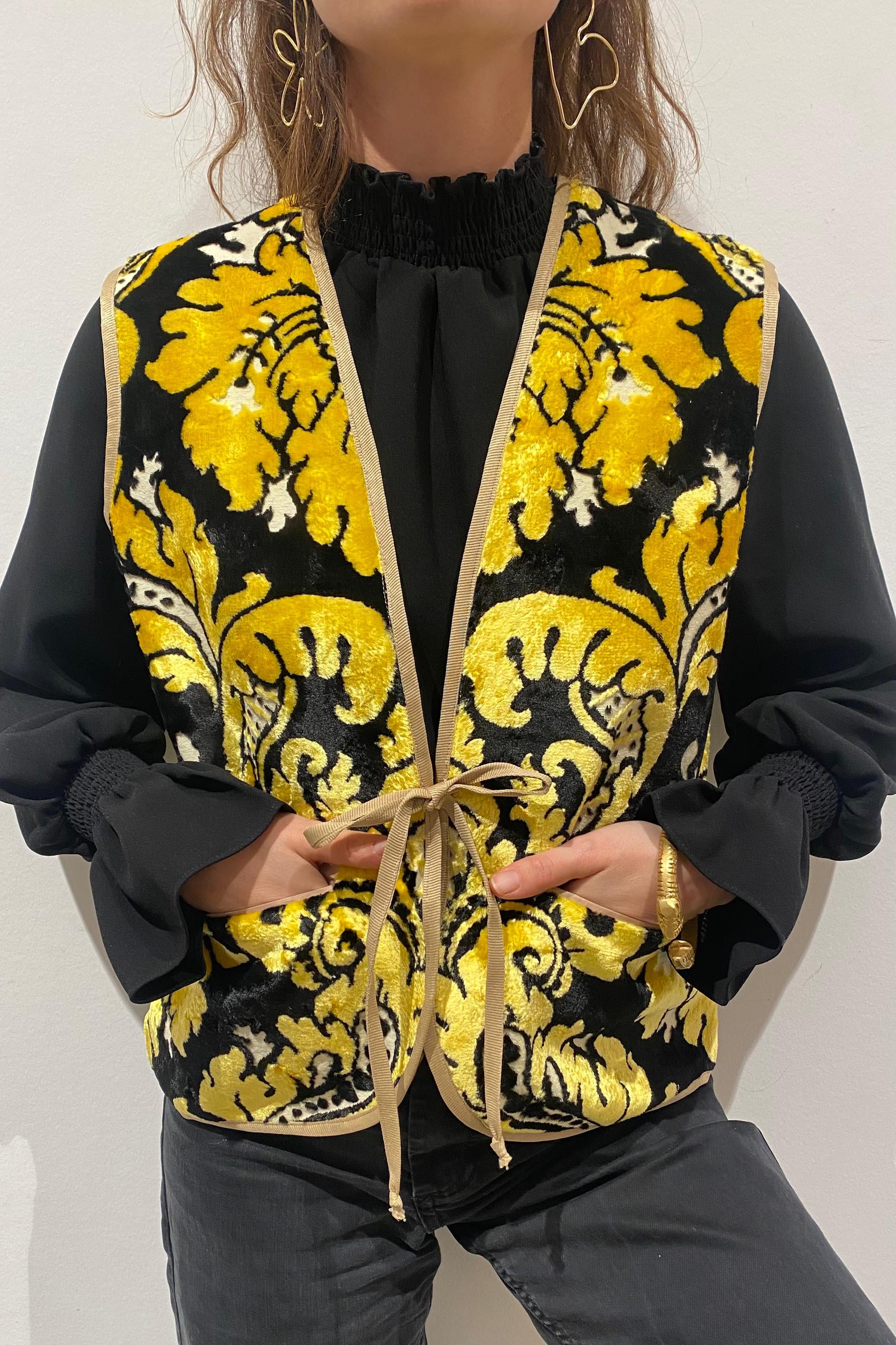 Upcycled Velvet Gilet - Black and Yellow