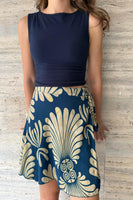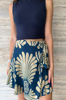 Crafted from high-quality leftover fabric, this vibrant wrap skirt gives new life to unused textiles originally produced for the fashion industry. Featuring bold red and green paisley motifs on a rich blue base, it brings together tradition and modern flair.