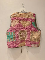 This one-of-a-kind gilet was created from a vintage Moroccan carpet and meticulously hand-sewn in collaboration with our partner atelier in Morocco.