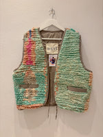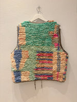 This one-of-a-kind gilet was created from a vintage Moroccan carpet and meticulously hand-sewn in collaboration with our partner atelier in Morocco.