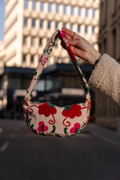 This beautiful small Suzani bag, measuring 25 cm in width and 37 cm in height (including the handle), is a truly unique accessory. Crafted from upcycled suzani fabric, each bag is one-of-a-kind, featuring vibrant, intricate patterns that showcase traditional craftsmanship. The bag is the perfect size to carry your essentials while offering a stylish, eco-friendly option. It can be worn comfortably on your shoulder or carried on your arm, adding an elegant touch to any outfit.