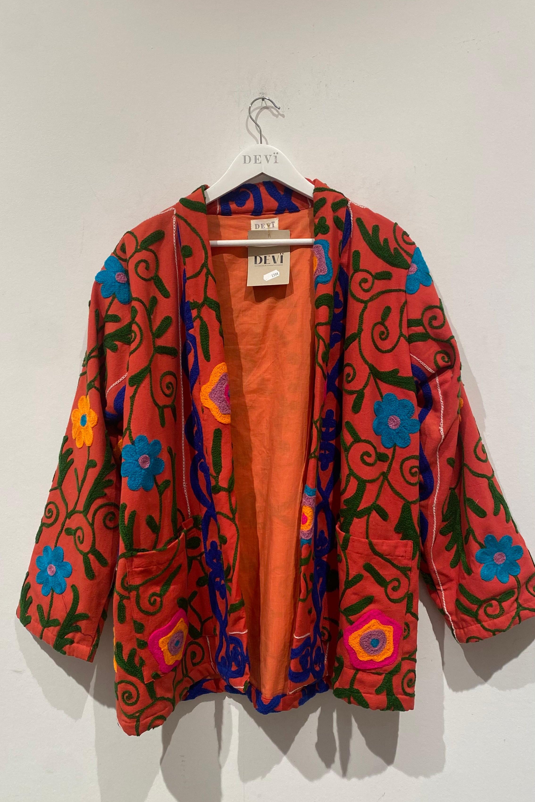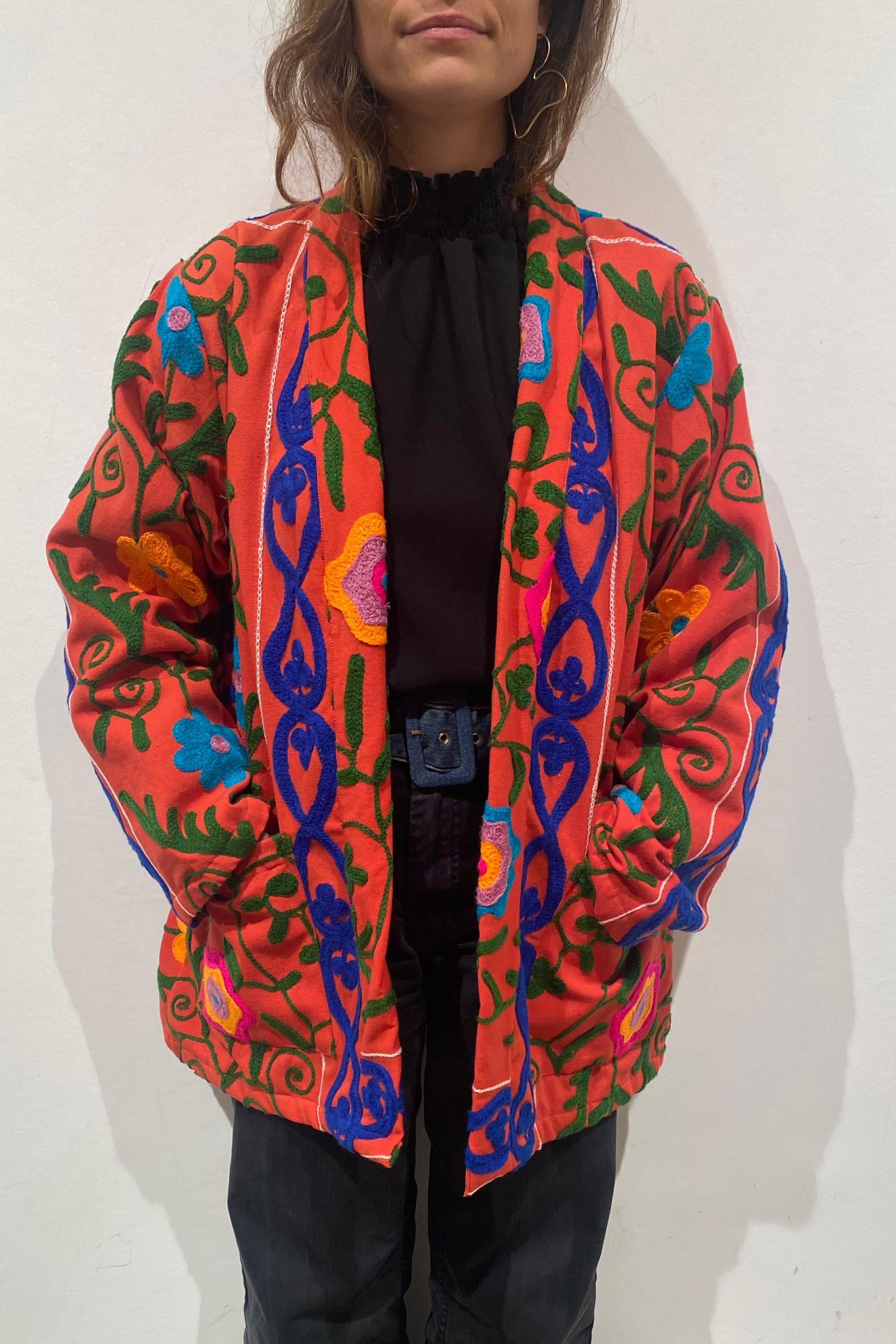 This unique kimono is crafted from vintage Suzani textiles, giving new life to traditional hand-embroidered fabrics. Each piece is individually made and truly one of a kind, defined by its rich patterns and artisanal detailing.